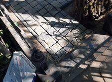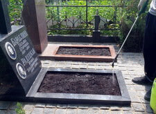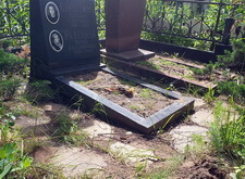 На фотографиях ниже видно промежуточное состояние места захоронения после укладки наземного покрытия и восстановления цветника.