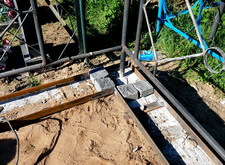 Тем временем опалубка окончательно высохла, и у нас появилась возможность вернуться к периметру участка. Отмерив брусчаткой точную ширину линии, мы приварили к уже существующему металлическому каркасу внутренние элементы.