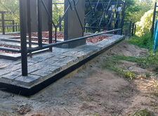 Под опоры ограждения в брусчатке были вырезаны соответствующие отверстия. Таким образом мы обошлись без ненужных сдвигов и неровных линий, получившийся периметр смотрелся одним целым.