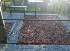 Дождавшись, пока покрытие высохнет, мы приступили к последней фазе работы. В цветники и специальную нишу, которую по желанию клиента не стали закладывать брусчаткой, засыпали мульчу. После этого протёрли памятники и ограждение. Могила готова, заказчик остался нами доволен.